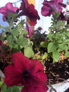 These petunias have been growing since last May… they spent the summer outside in a pot and have spent the whole winter in the greenhouse. I think they are happy!